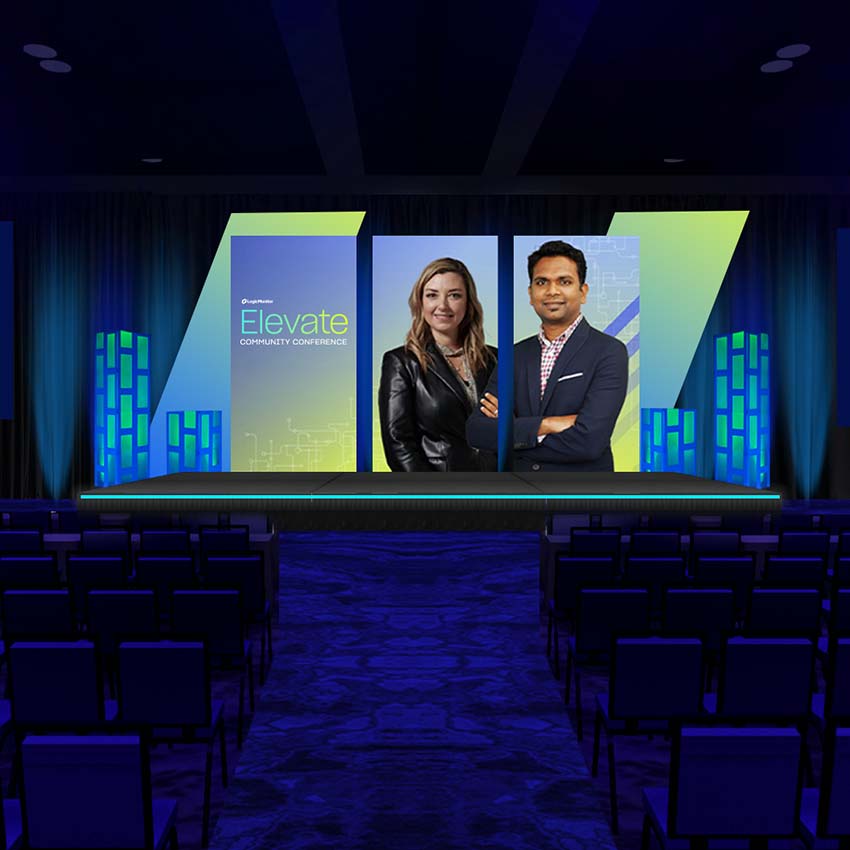 Logic Monitor relaunched its flagship customer event, Elevate, in Dallas. The chosen downtown venue presented challenges, including low ceilings, a drab atmosphere, and limited built-in branding opportunities. Bright AV was hired to ideate and execute a strong brand presence for Logic Monitor from the moment guests arrived, transform the general session space, and design breakout and demo areas that felt warm and welcoming, all while staying within a set budget.